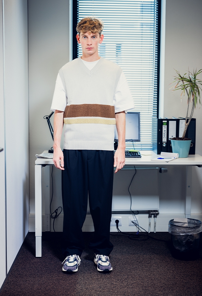 Mischievous en mysterious, de preppy campus edit heeft overduidelijk een ondeugend randje. Door de ietwat bescheiden kleding zoals de nette spencer en losse heren chino is de look simpel met een jeugdige hint. Door de toevoeging van een opvallend paar heren sneakers krijgt de look een nonchalante uitstraling met free-spirit college vibes. The less you care, the more fun you will have.