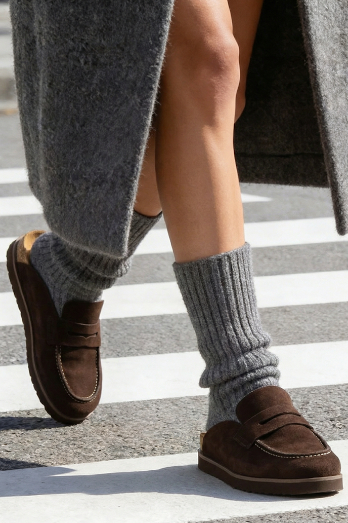 Donkerbruine suède instappers