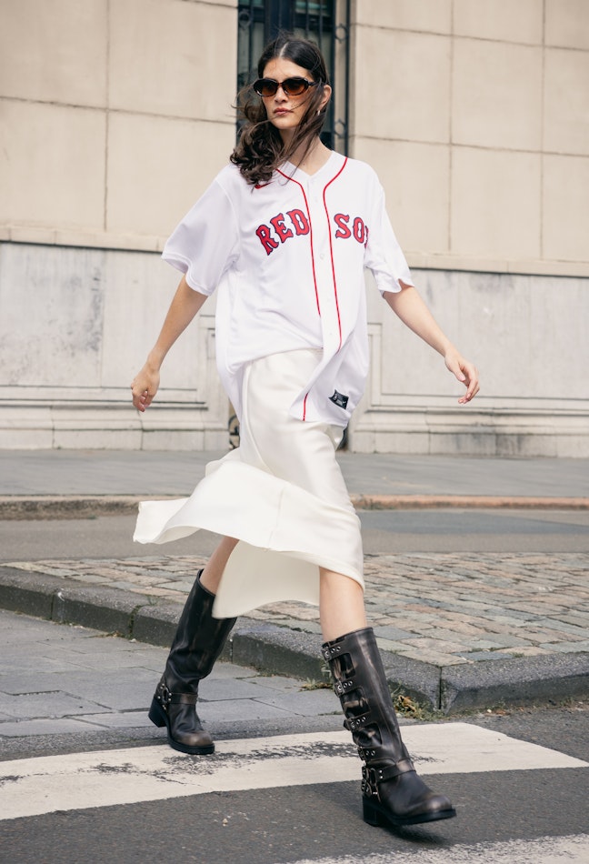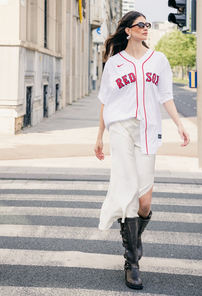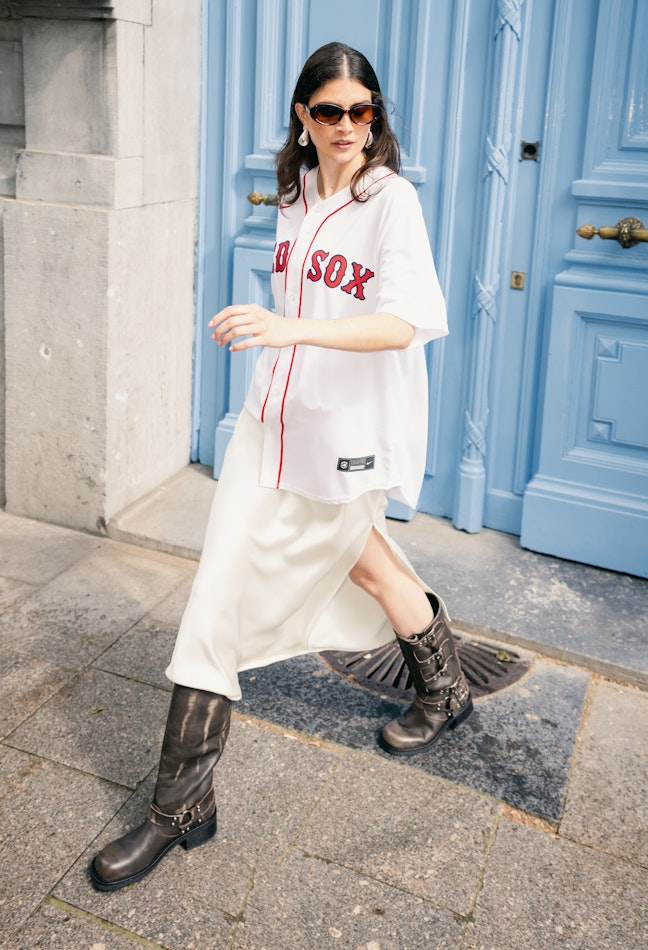 The reinvention of old-scool athletic fits. De fashion scene omarmt de nostalgie van klassieke athleisure wear. Van retro jersey-inspired shirts tot old scool sweatshirts, combineer je favoriete vintage-inspired sportswear met moderne fashion items zoals een white satin slip skirt. Complete the look with this season's hottest multi buckle biker boots for a contemporary twist on old-school athletic outfits.